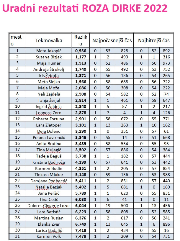 Roza dirka 2022 - REZULTATI in GALERIJA SLIK